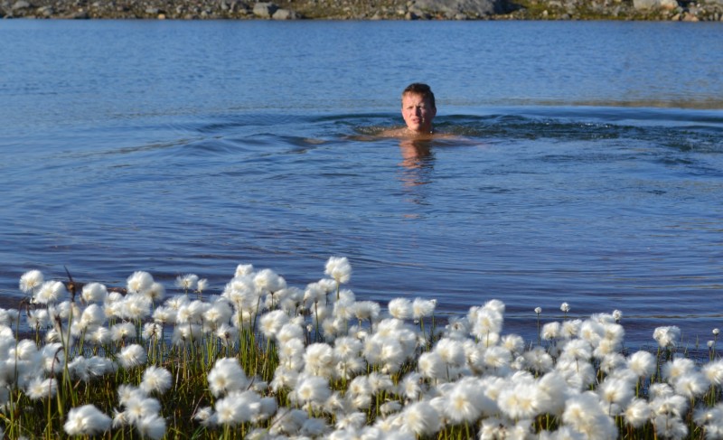 Vel nede i leiren tok Simon seg et bad, før det ble en god middag, kortspill, røverhistorier, nordlys og en god natts søvn i teltleiren på halvøya vår. Bretur ga mersmak. Ikke alle trodde på at Markus hadde sett isbjørn på breen. Et obligatorisk gruppebilde på vei ned fra breen. Vi gleder oss til kajakktur neste uke!