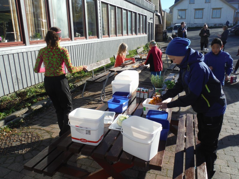 - Lunsj: Elevene smurte en personlig matpakke med frukt og grønt