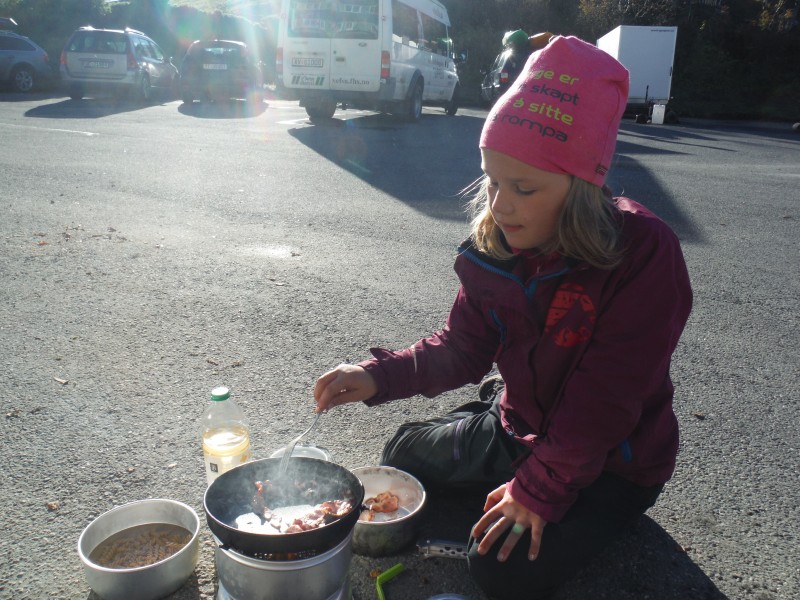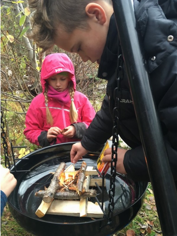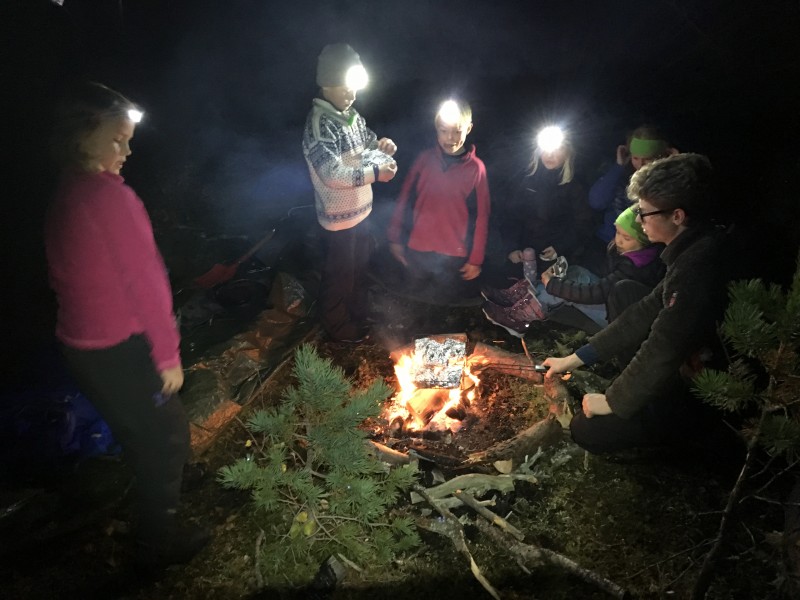 Torsdag kveld skulle alle vi på friluftsskolen overnatte ute på Ollmoen i lavvo. Elevene fikk bruke sin kunnskap og erfaring fra tidligere overnattingsturer til å hjelpe ungene til å oppleve mestring selv om natten bydde på minusgrader. Linjelærer Caroline ble i løpet av natten en madrass for jentene i jentelavvoen. Men det viktigste er at de små får gode opplevelser i friluftslivet, slik at de kommer tilbake til naturen.