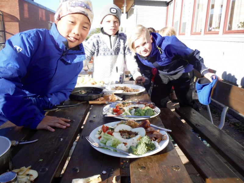 - Kokkekamp: Ungene hadde konkurranse om å lage god mat på stormkjøkken. Elevene var dommere og måtte dermed smake på maten. Det smakte godt 🙂
