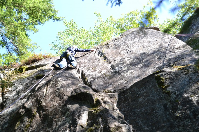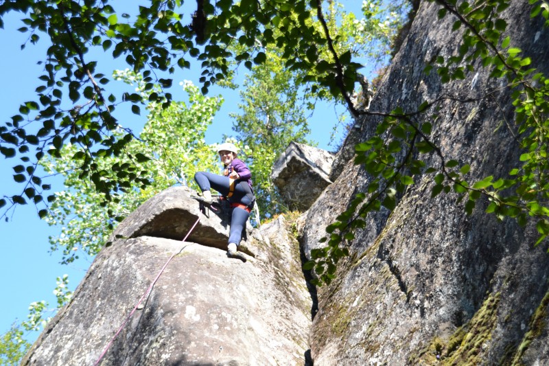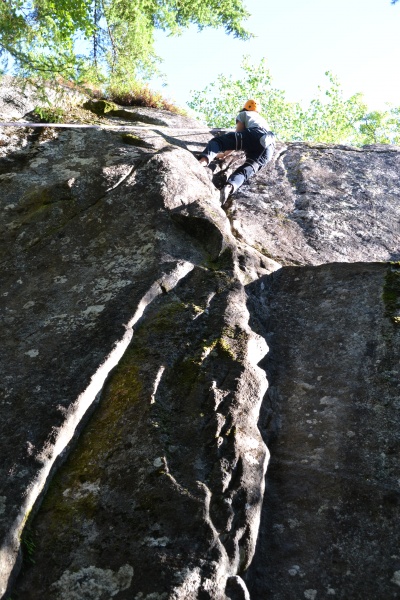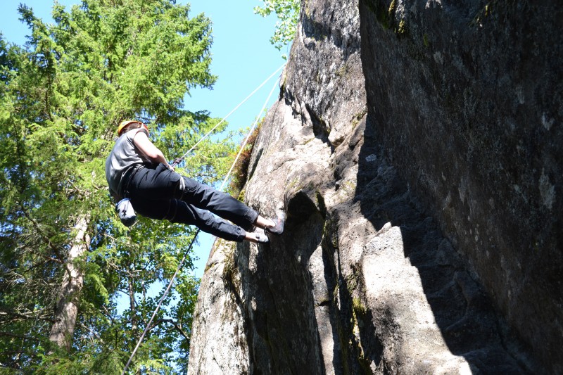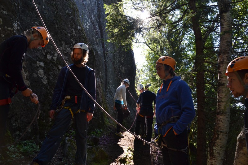 Skoleårets første linjedag ble godt utnyttet av Kajakk & klatring – Canada. Både elever og lærer på linja lengtet etter en tur ut og å komme ordentlig i gang. Vi satte nesa mot en klatrevegg i marka nær skolen. Både været og stemninga i gruppa var upåklagelig. Det ble en kort introduksjon i både sikring og klatring der alle fikk prøvd seg. Det tar litt tid før man blir trygg på utstyret og på hverandre, men det er ingen tvil om at vi har et godt utgangspunkt for klatringa på linja i år. Det var en blid og engasjert gjeng som lekte seg i veggen denne dagen. Vi gleder oss til neste gang!