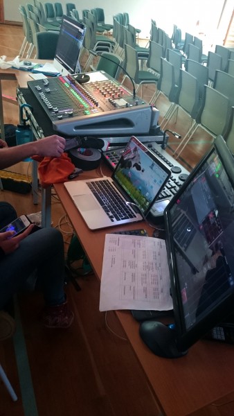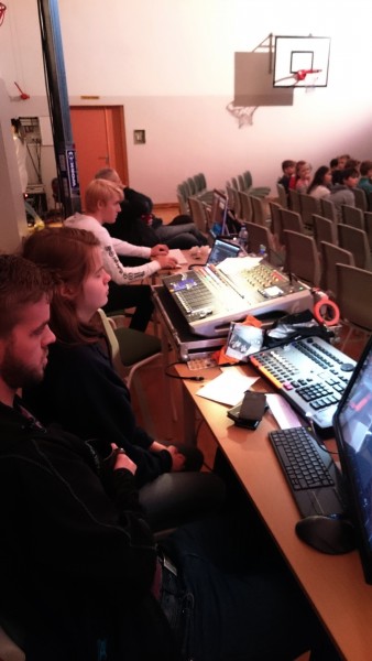 Vi delte klassen til de forskjellige oppgavene. Jarl-Erik tok ansvar for digitalmikseren, Aleksandra og jeg (Albert) tok ansvaret for Q-lab, mens Eivor og Adrian styrte lys.