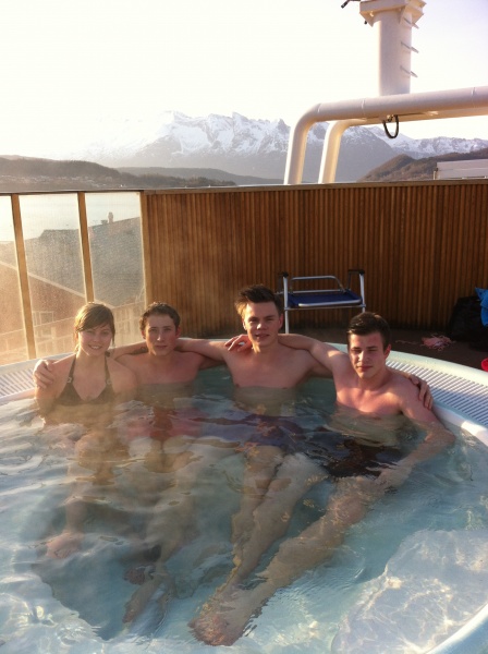 Idrettseksjonen fekk oppleve mykje av Helgeland då vi reiste med Hurtigruta oppover langs kysten. Vi gjekk ombord frå Sandnessjøen og fekk med oss soloppgangen og fjella rundt i nydeleg veir! Boblebadet på taket av MS Trollfjord vart oppdaga og måtte sjølvsagt prøvast ut før vi kom til Bodø.